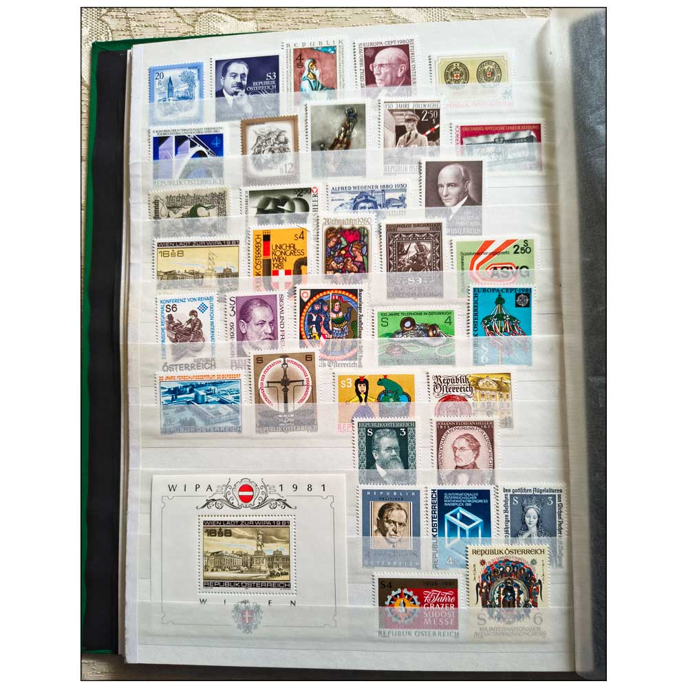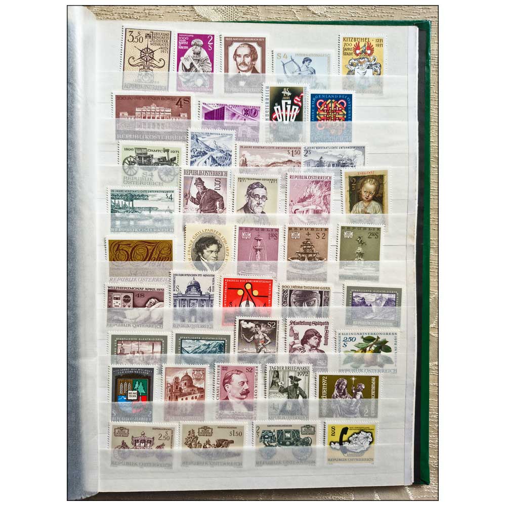 COLLECTION OF AUSTRIA STAMPS from 1971-1981 in STAMPS STOCK BOOK – ALL MNH