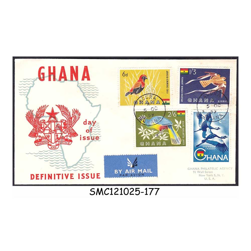 GHANA – 1956 DEFINITIVE ISSUE / BIRDS – 4V – FDC AIR MAIL REGISTERED