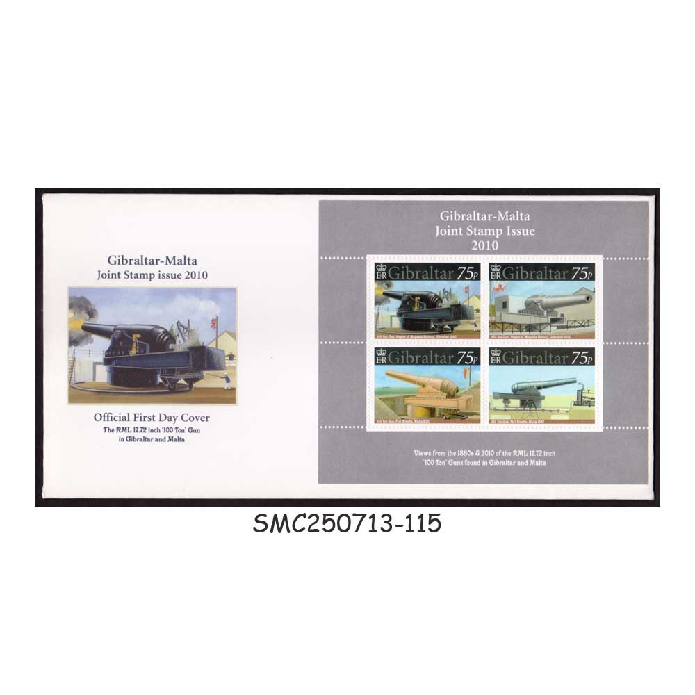 GIBRALTAR MALTA JOINT ISSUE – 2010 “100 TONES” GUNS – COVER MINT