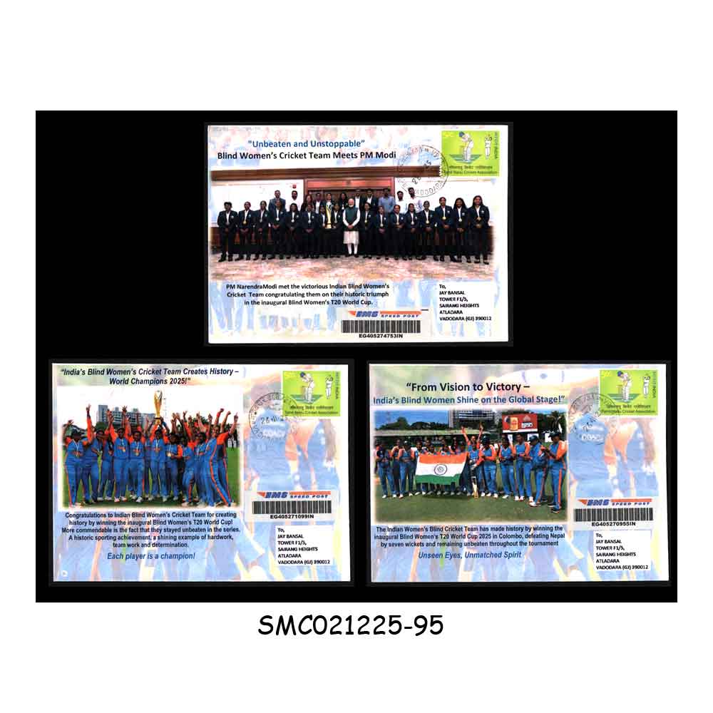 INDIA – 2025 INDIAN’S BLIND WOMEN’S CRICKET TEAM WINNER OF WORLD CUP SET OF 3 COVERS – COMMERCIALLY USED