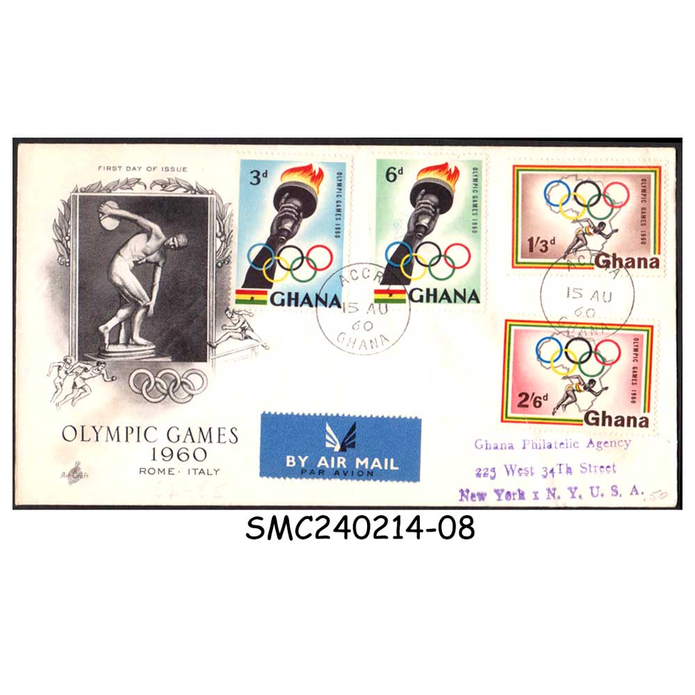 GHANA – 1960 OLYMPIC GAMES ROME – 4V – FDC REGISTERED AIR MAIL