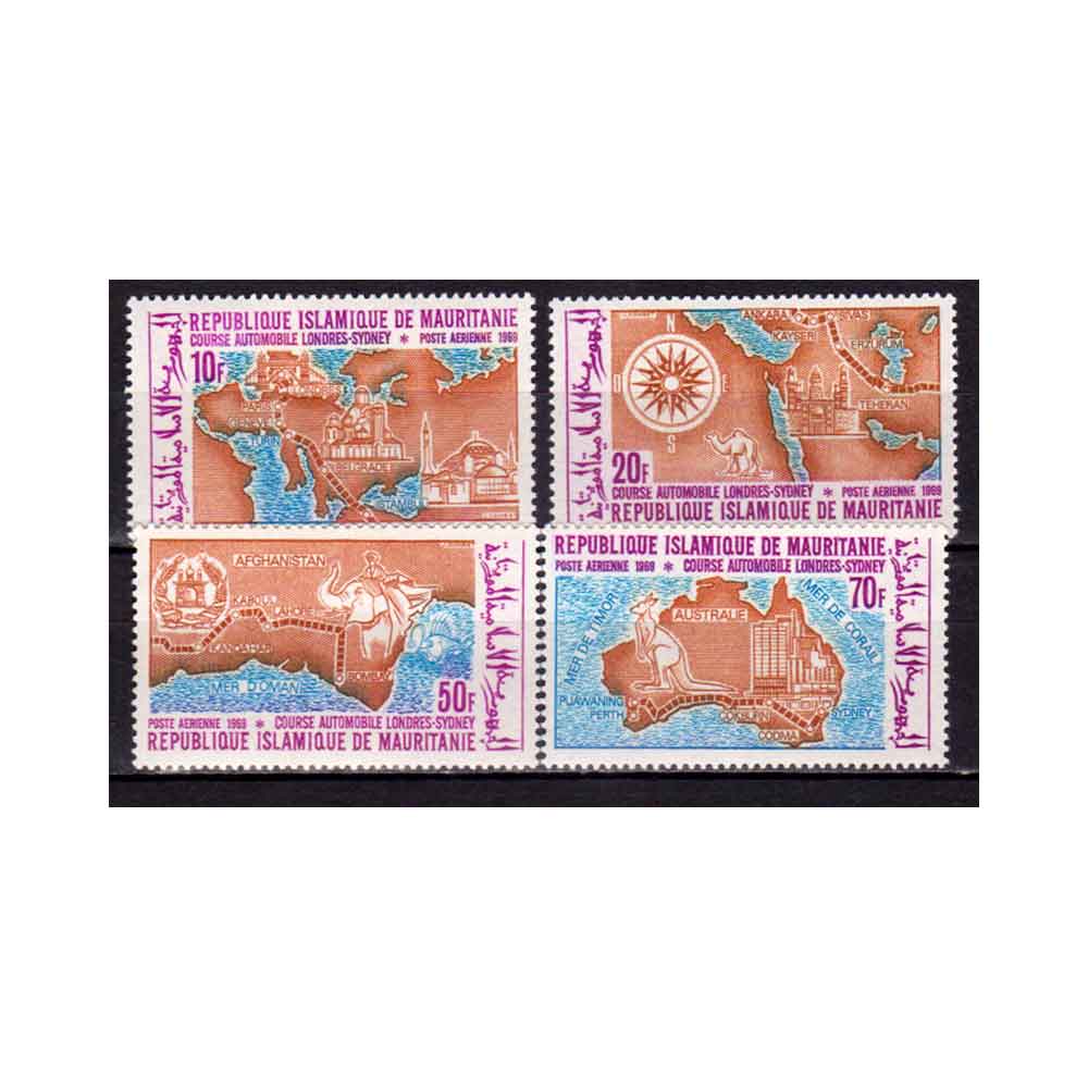 MAURITANIA – 1969 LONDON TO SYDNEY AUTOMOBILE RALLY 4V MINT NH