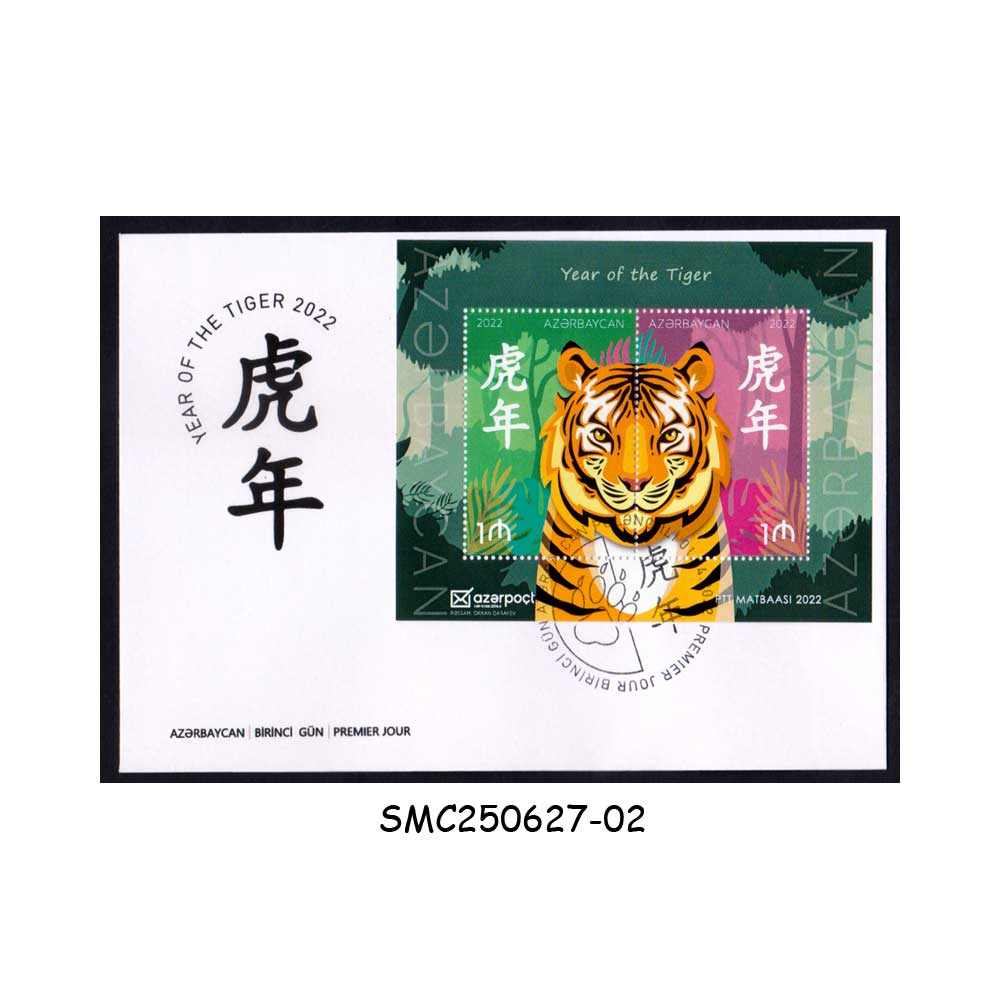 Stamps from AZERBAIJAN – 2022 CHINESE NEW YEAR – YEAR OF THE TIGER – MS – FDC