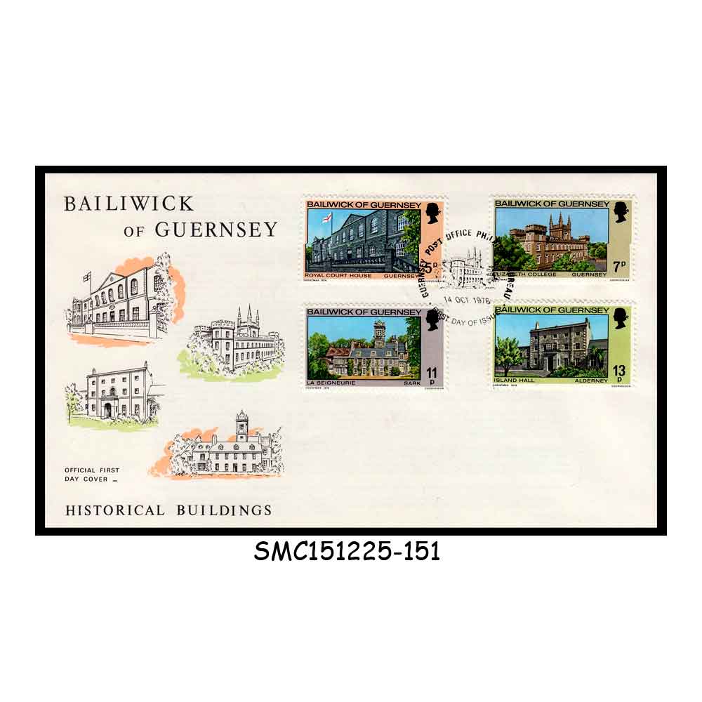 Stamps from BAILIWICK OF GUERNSEY – 1976 HISTORICAL BUILDINGS – FDC