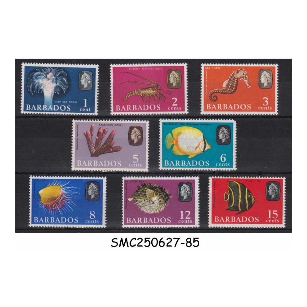 BARBADOS – 1965 QEII DEFINTIVES / MARINE CREATURES SCOTT#267-275 8V – MINT HINGED