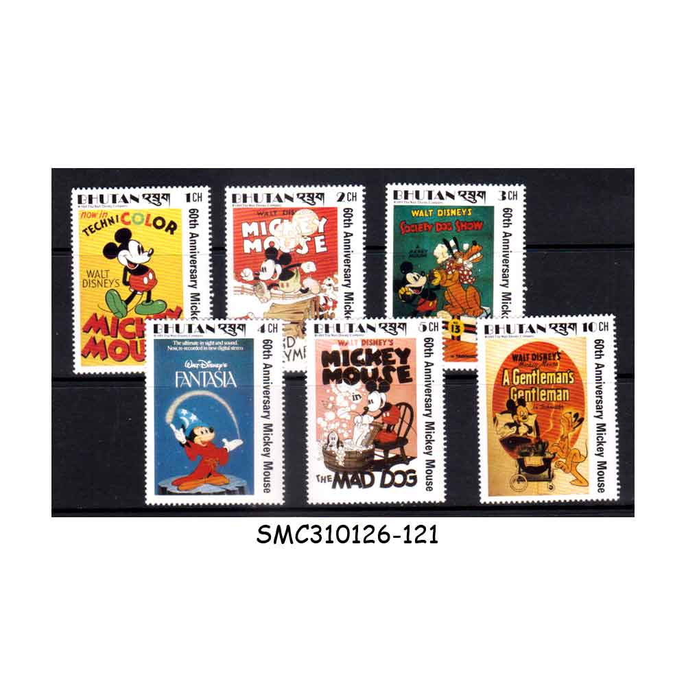 BHUTAN – 1989 60th ANNIVERSARY OF MICKEY MOUSE / DISNEY ANIMATION – 6V MINT NH