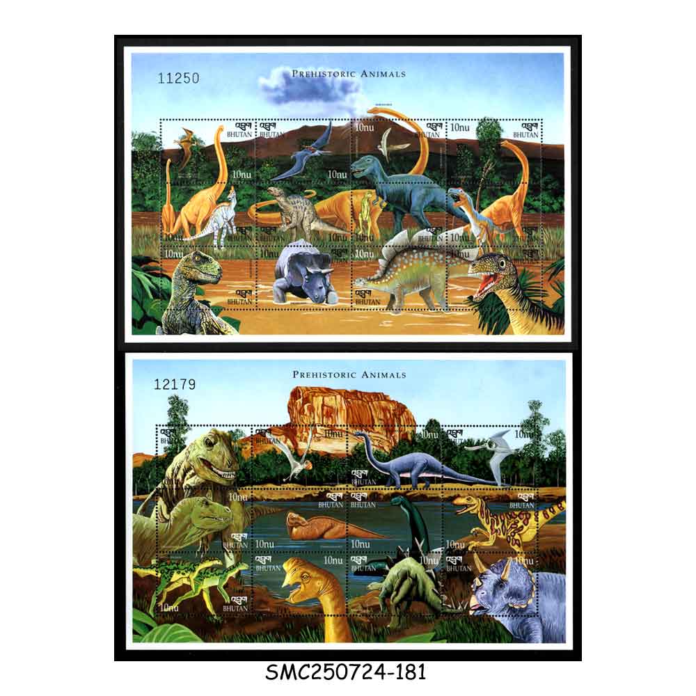 BHUTAN – 1999 PREHISTORIC ANIMALS / DINOSAURS – SET OF 2 MIN. SHEET MINT NH