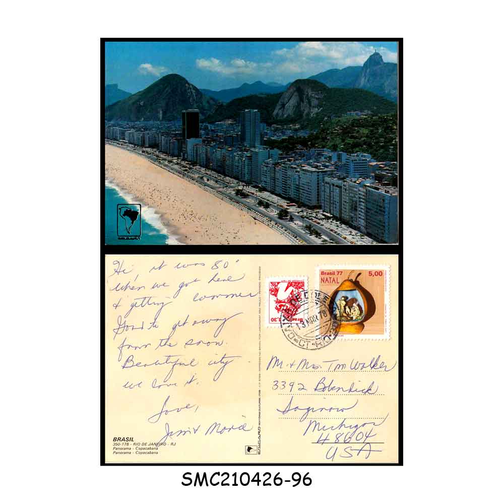 BRAZIL – 1978 COPACABANA BEACH PICTURE POSTCARD to USA with STAMPS