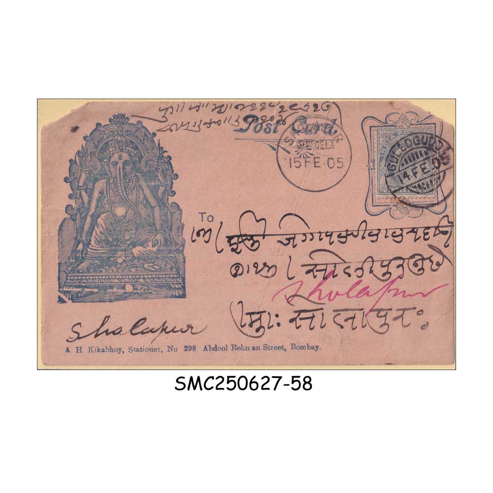 BRITISH INDIA BAZAAR POSTCARD 1905 to SHOLAPUR with PICTURE OF HINDU GOD GANESH