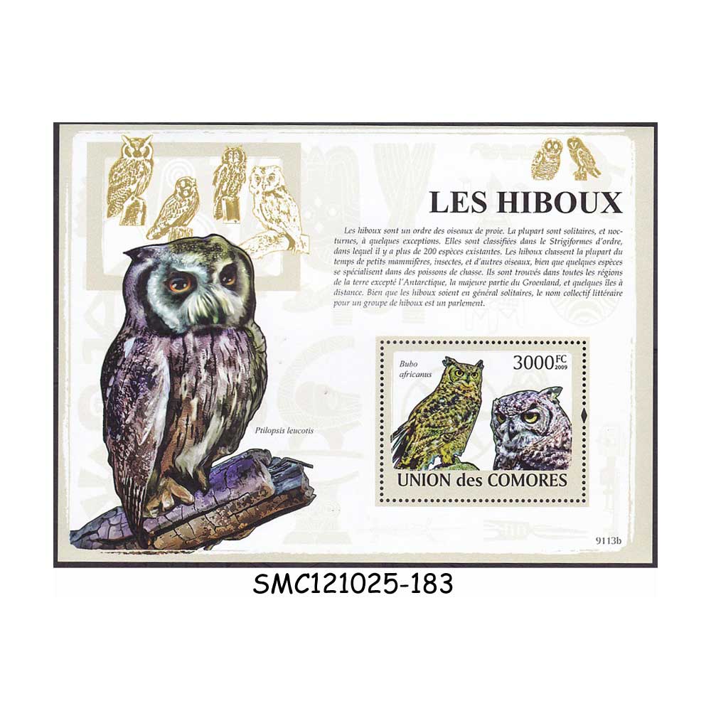 Stamps from COMOROS – 2009 OWLS / BIRDS OF PREY – MIN. SHEET MINT NH
