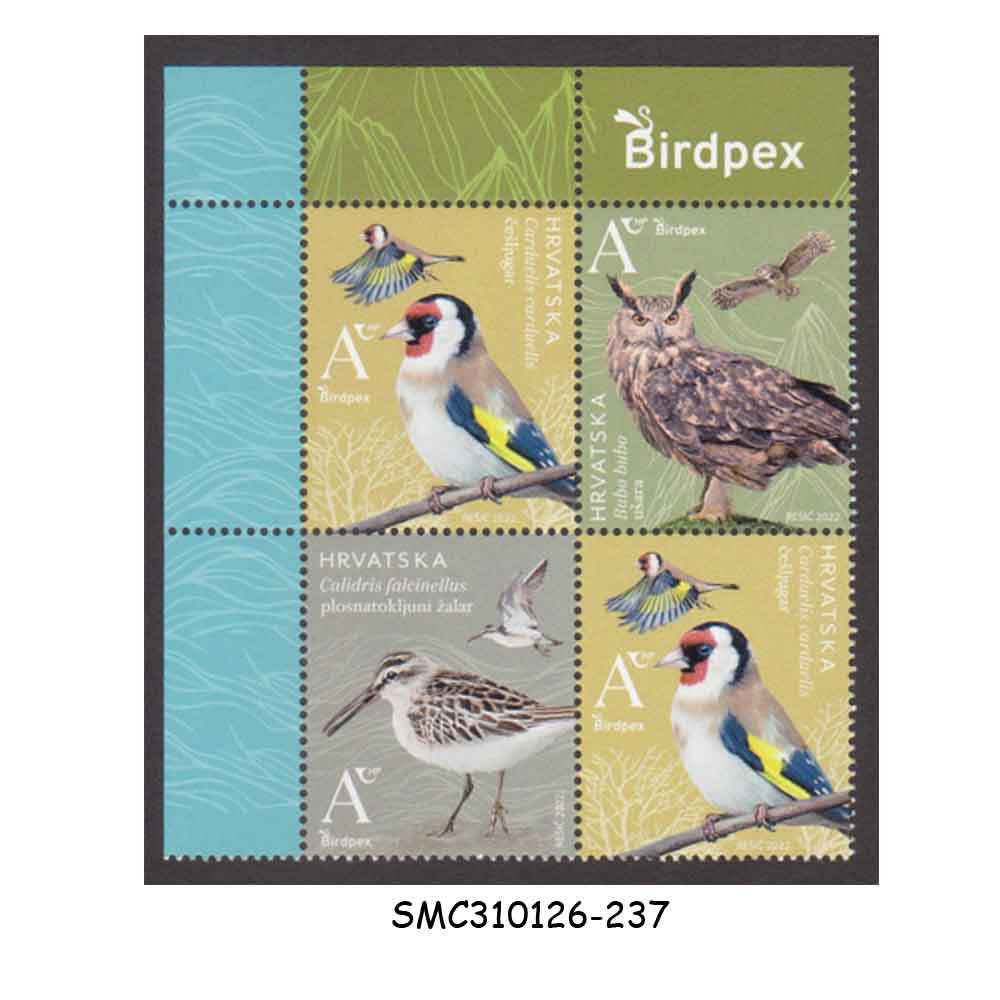 CROATIA – 2022 BIRDPEX – PROTECTED BIRDS SPECIES – BLOCK OF 4 SE-TENANT MINT NH