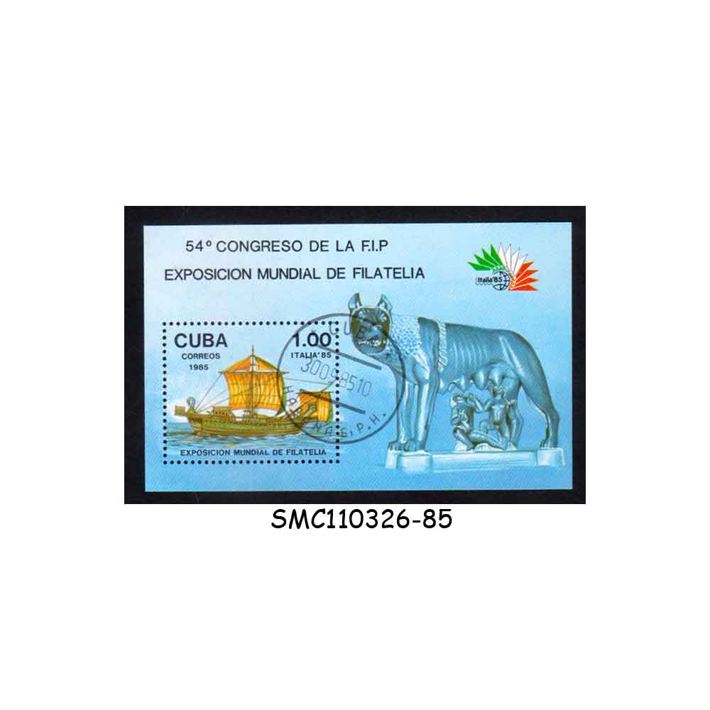 CUBA – 1985 ITALIA ’85 PHILATELIC EXHIBITION / ROMAN SHIP – MIN. SHEET CTO