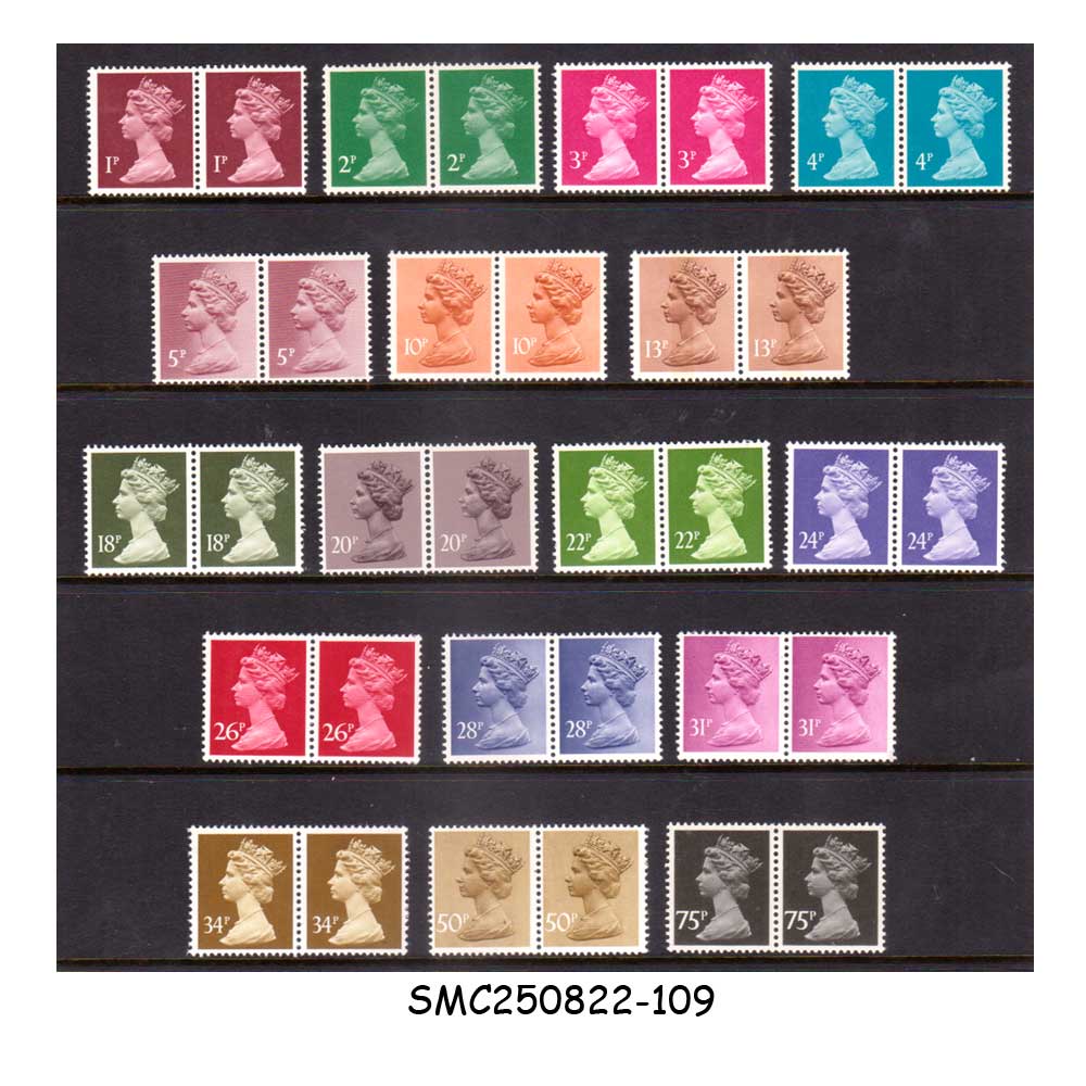 GREAT BRITAIN – 1971-96 SELECTED STAMPS OF QEII DEFINITIVES – 17V PAIR MINT NH