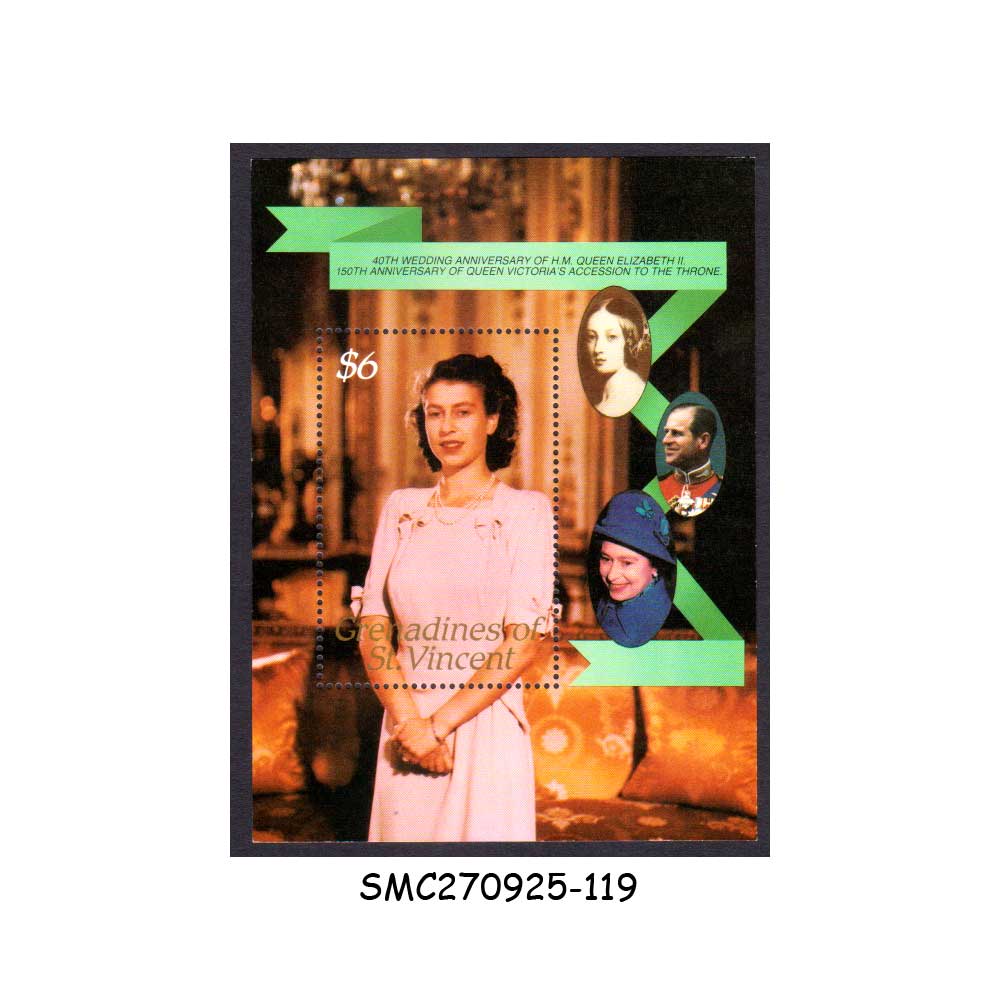 GRENADINES of ST. VINCENT – 1987 40th WEDDING ANNIVERSARY OF QUEEN ELIZABETH II – MIN. SHEET MNH