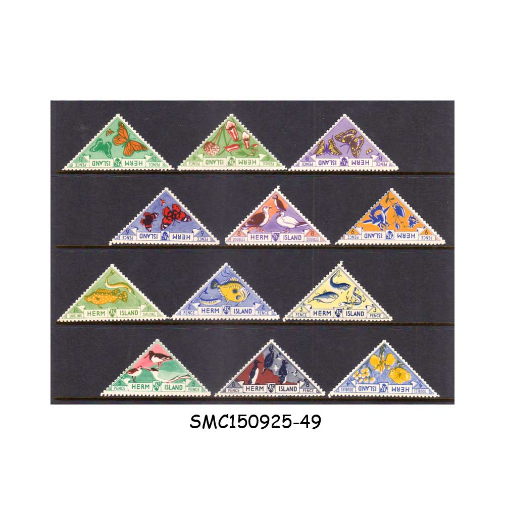 Stamps from GUERNSEY, HERM ISLAND: PRIVATE POST OFFICES – 1954 FLORA & FAUNA OF HERM ISLAND – 12V MINT NH