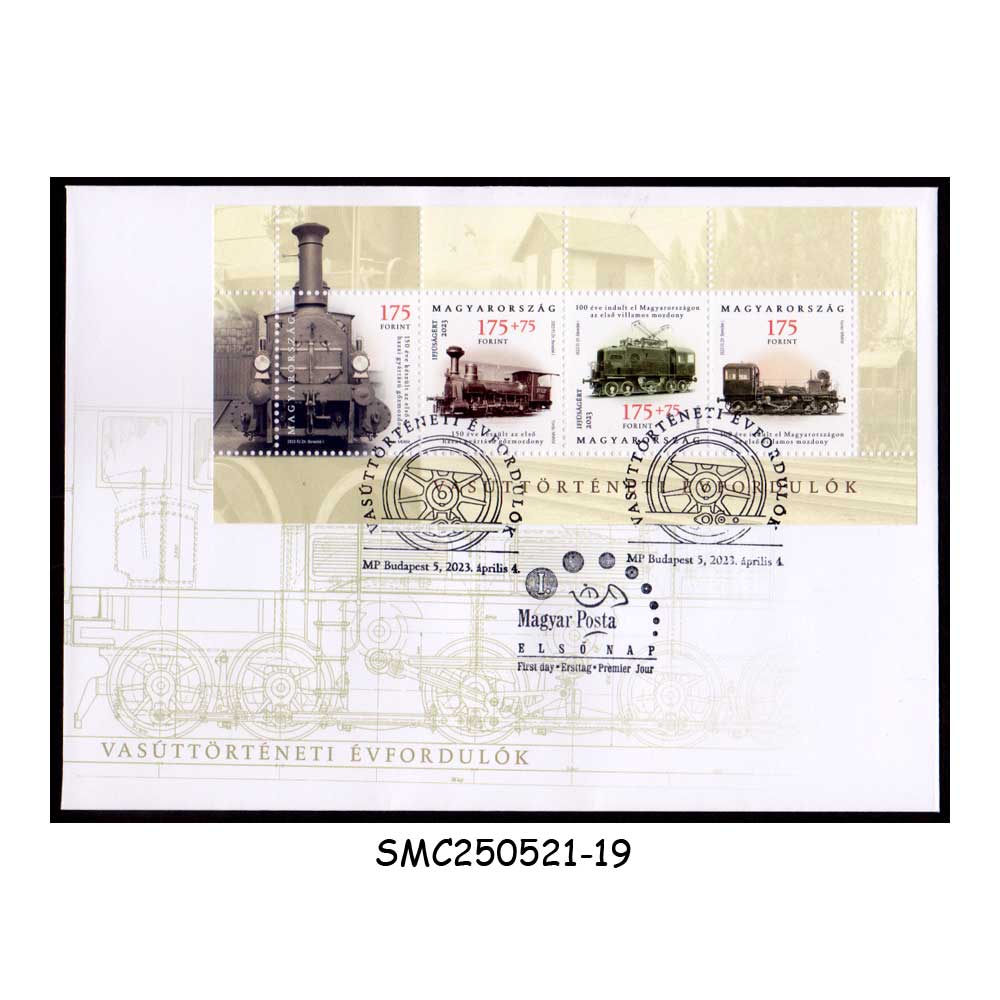 STAMPS from HUNGARY – 2023 RAILWAY HISTORICAL ANNIVERSARIES – MS – FDC