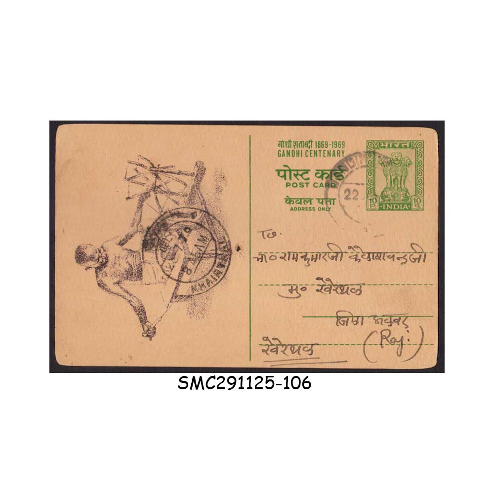 INDIA – 1970 10p GANDHI CENTENARY POSTCARD – USED