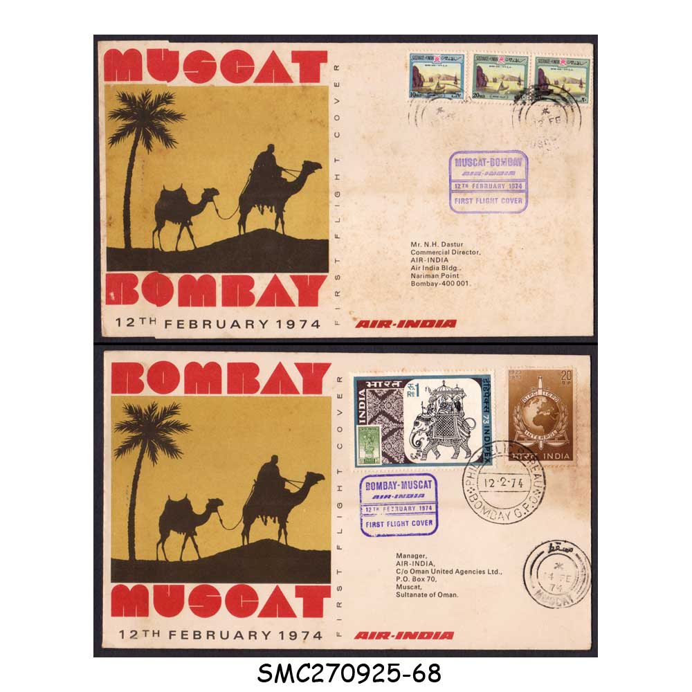 INDIA – 1974 AIR-INDIA AIRLINES BOMBAY to MUSCAT to BOMBAY – FIRST FLIGHT COVER FFC 2nos