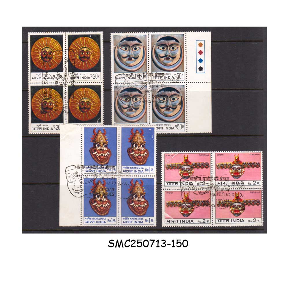 INDIA – 1974 INDIAN MASKS – BLOCK OF 4 – 4V – FDI