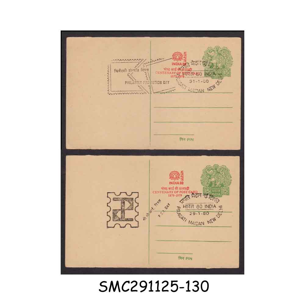 Stamps from INDIA – 1980 CENTENARY OF POST CARD INDIA 80 – 2 POSTCARDS with CANCELLATION