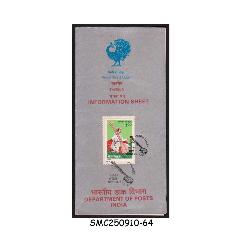 STAMPS FROM INDIA – 1986 TANSEN / MUSICIAN – BROCHURE – FDI