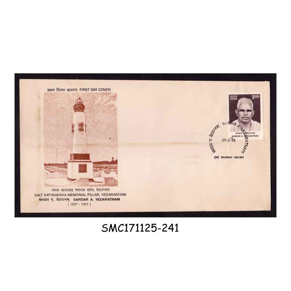 STAMPS FROM INDIA – 1998 SALT SATYAGRAHA MEMORIAL PILLAR, VEDARANIYAM FIRST DAY COVER