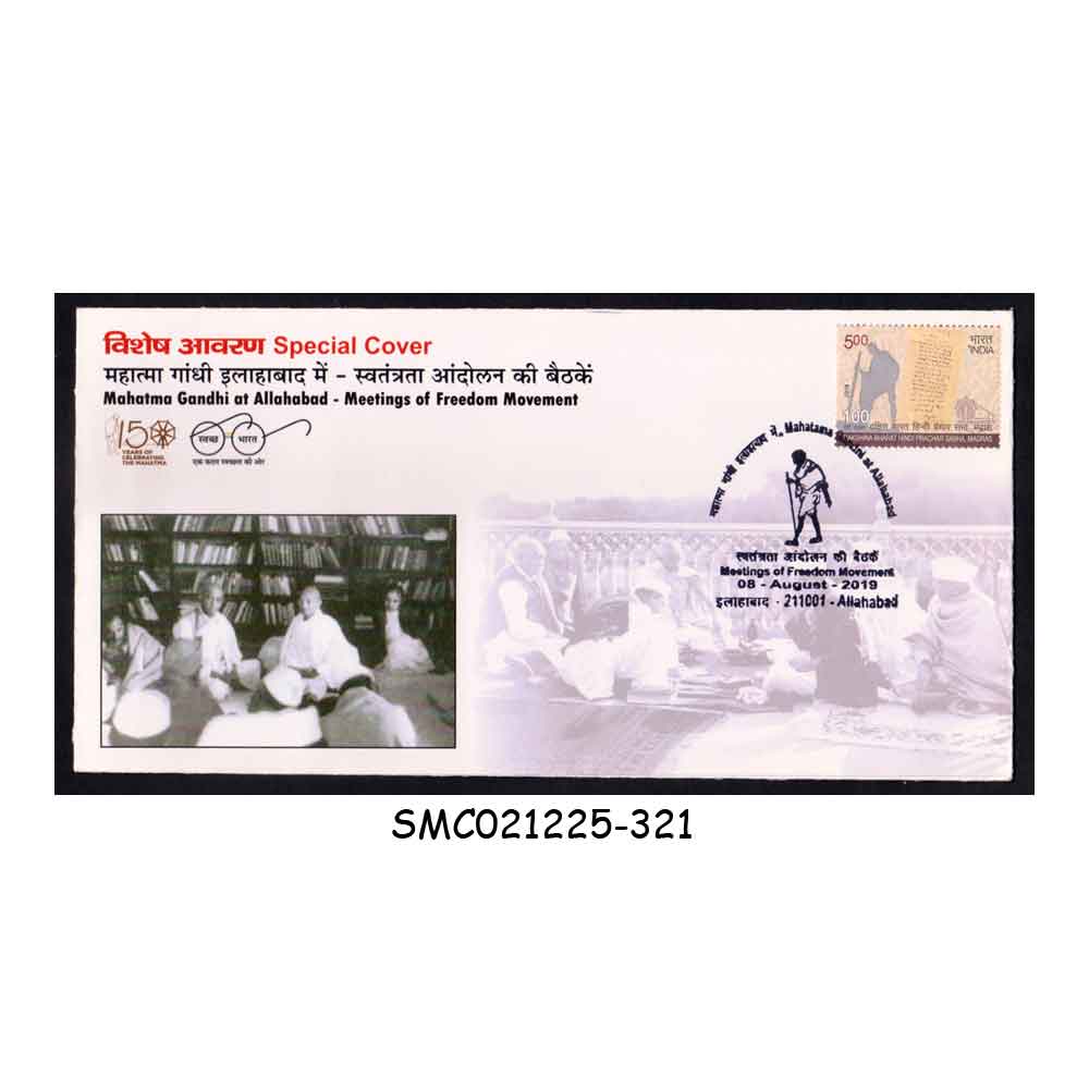 INDIA 2019 MAHATMA GANDHI AT ALLAHABAD : MEETINGS OF FREEDOM MOVEMENT SPECIAL COVER WITH SPECIAL CANCL.