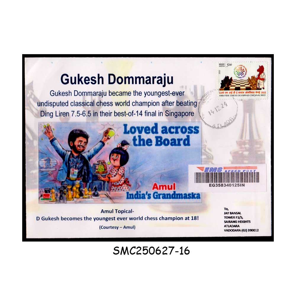 INDIA – 2024 AMUL TOPICAL : GUKESH DOMMARAJU – COMMERCIALLY USED COVER EMS POST