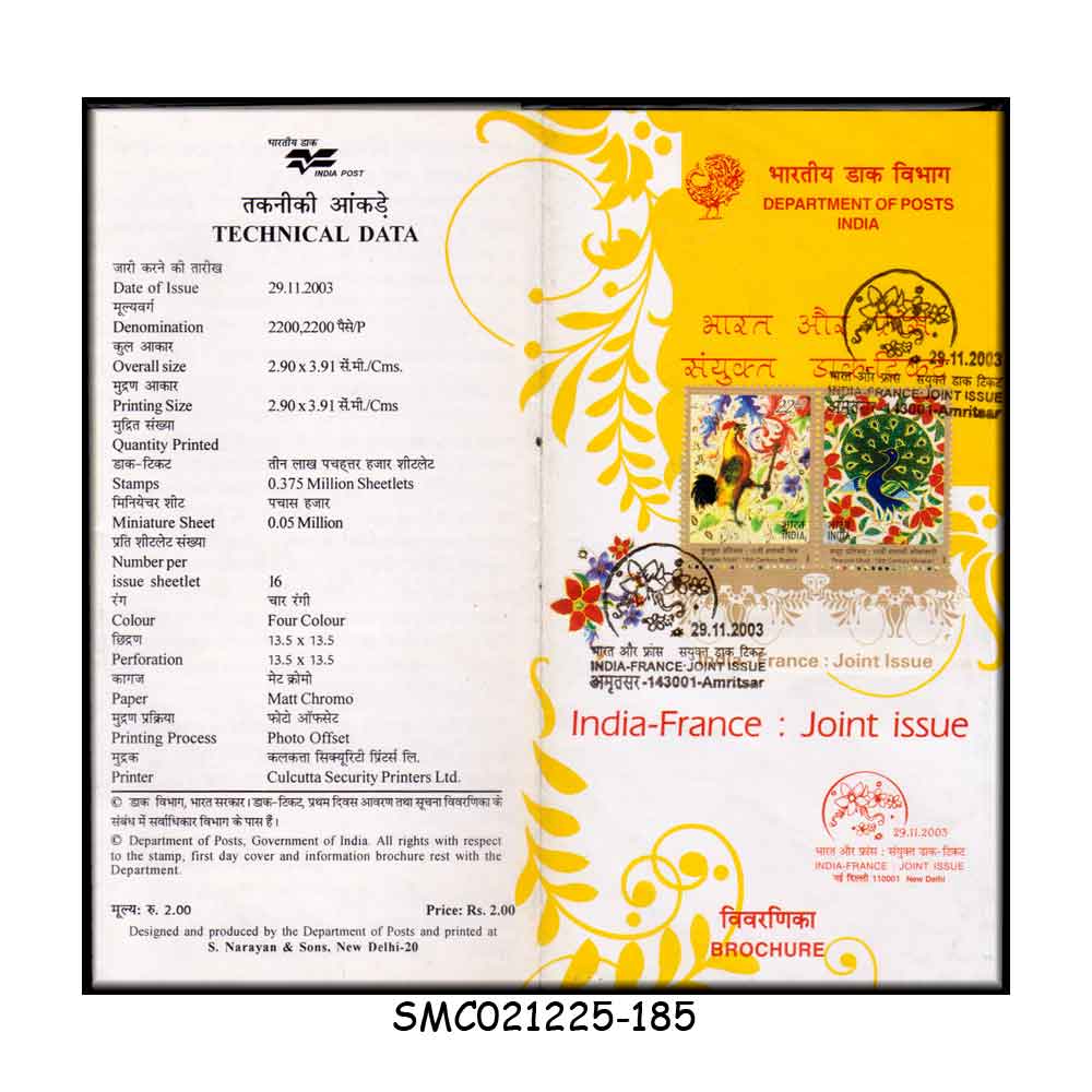 INDIA FRANCE JOINT ISSUE 2003 ROOSTER & PEACOCK MOTIFS – BROCHURE – FDI