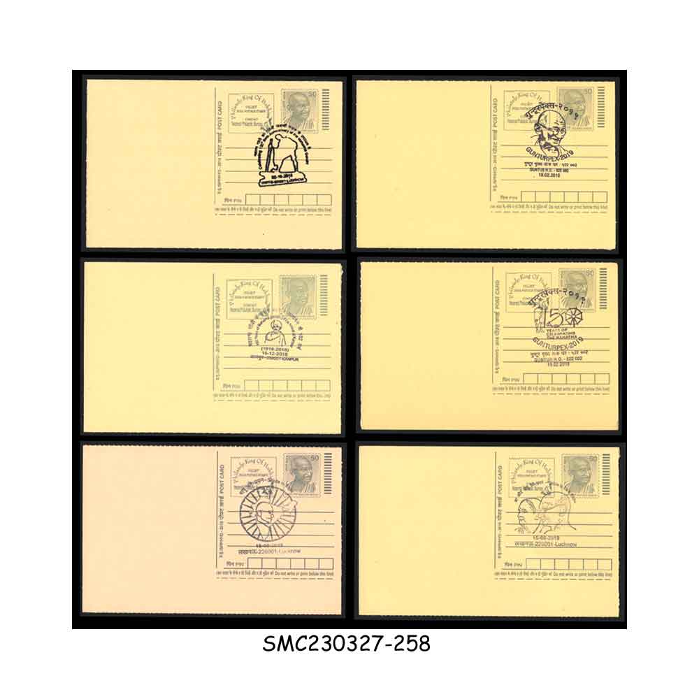 Stamps from INDIA – SELECTED 6 GANDHI POSTCARDS WITH DIFFERENT CANCELLATION
