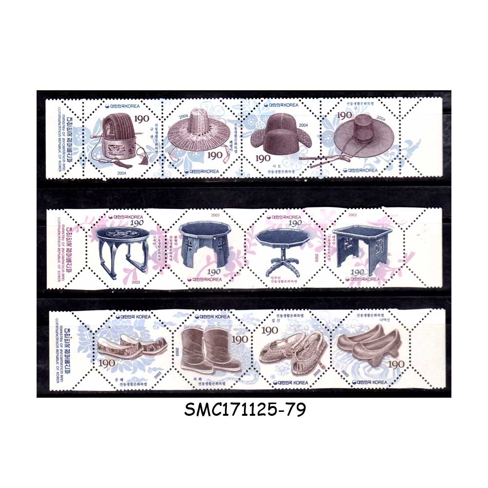 Stamps from KOREA – 2003-04 TRADITIONAL CULTURE SERIES SHOES TABLE & HATS – 12V MINT NH