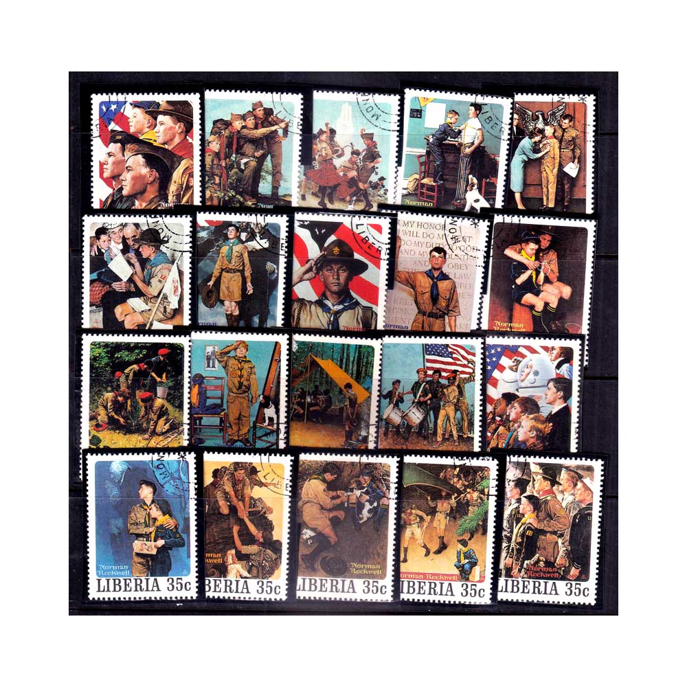LIBERIA – 1979 SCOUT PAINTINGS BY NORMAN ROCKWELL – 45V – USED