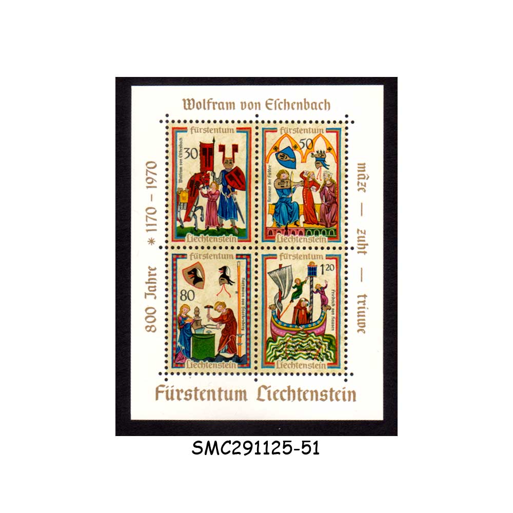 LIECHTENSTEIN – 1970 MEDIEVAL SINGERS SCOTT#471 – MIN. SHEET MINT NH