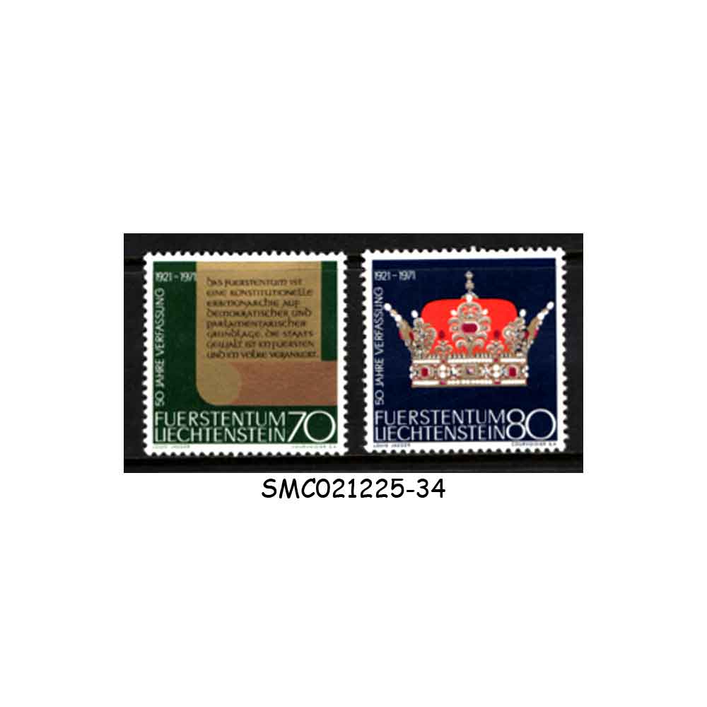 Stamps from LIECHTENSTEIN – 1971 50th ANNIVERSARY OF NEW CONSTITUTION – 2V – MINT NH