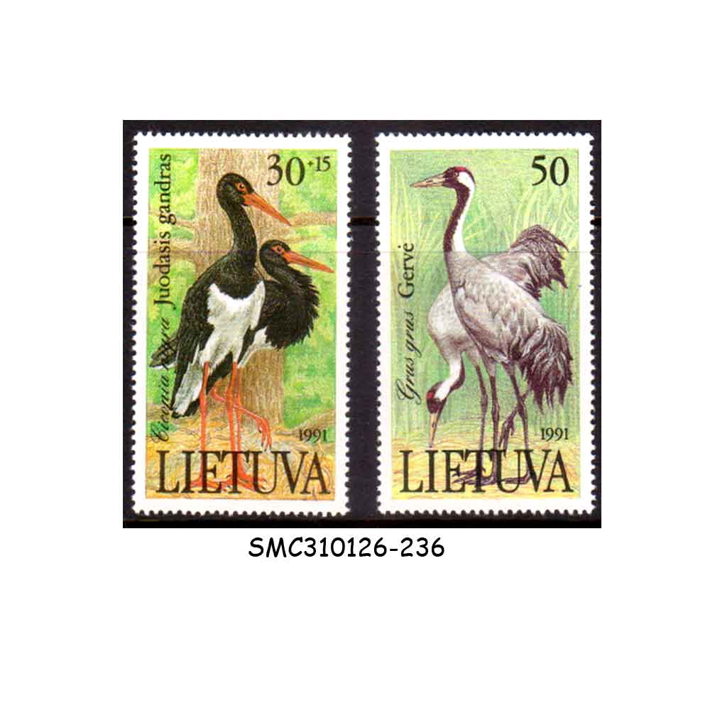 LITHUANIA – 1991 BIRDS / CRANE STORK – 2V – MINT NH