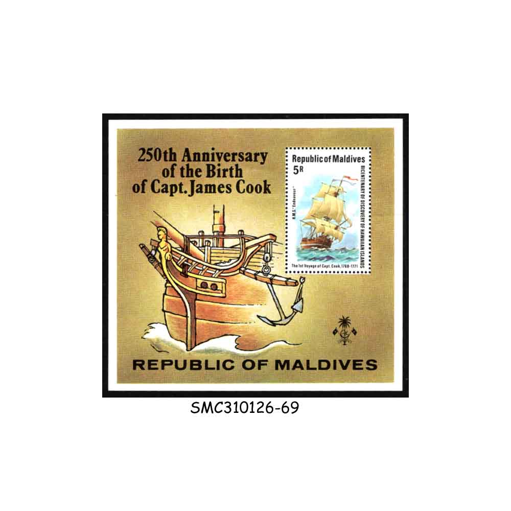 MALDIVES – 1979 250th BIRTH ANNIVERSARY OF CAPTAIN JAMES COOK MIN. SHEET MINT NH