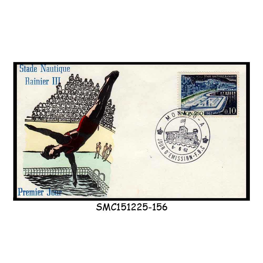 Stamps from MONACO – 1962 SWIMMING STADIUM RAINIER III / SPORTS – FDC