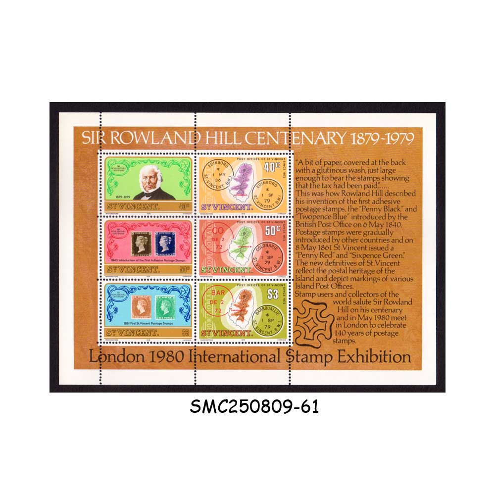 ST. VINCENT – 1979 DEATH CENTENARY OF SIR ROWLAND HILL – MIN. SHEET MINT NH