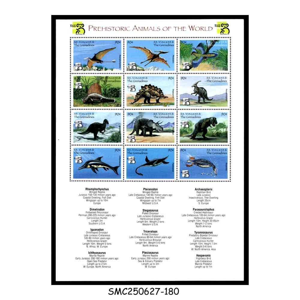 ST. VINCENT & THE GRENADINES – 1999 PREHISTORIC ANIMALS DINOSAURS / AUSTRALIA ’99 – MIN. SHEET MNH