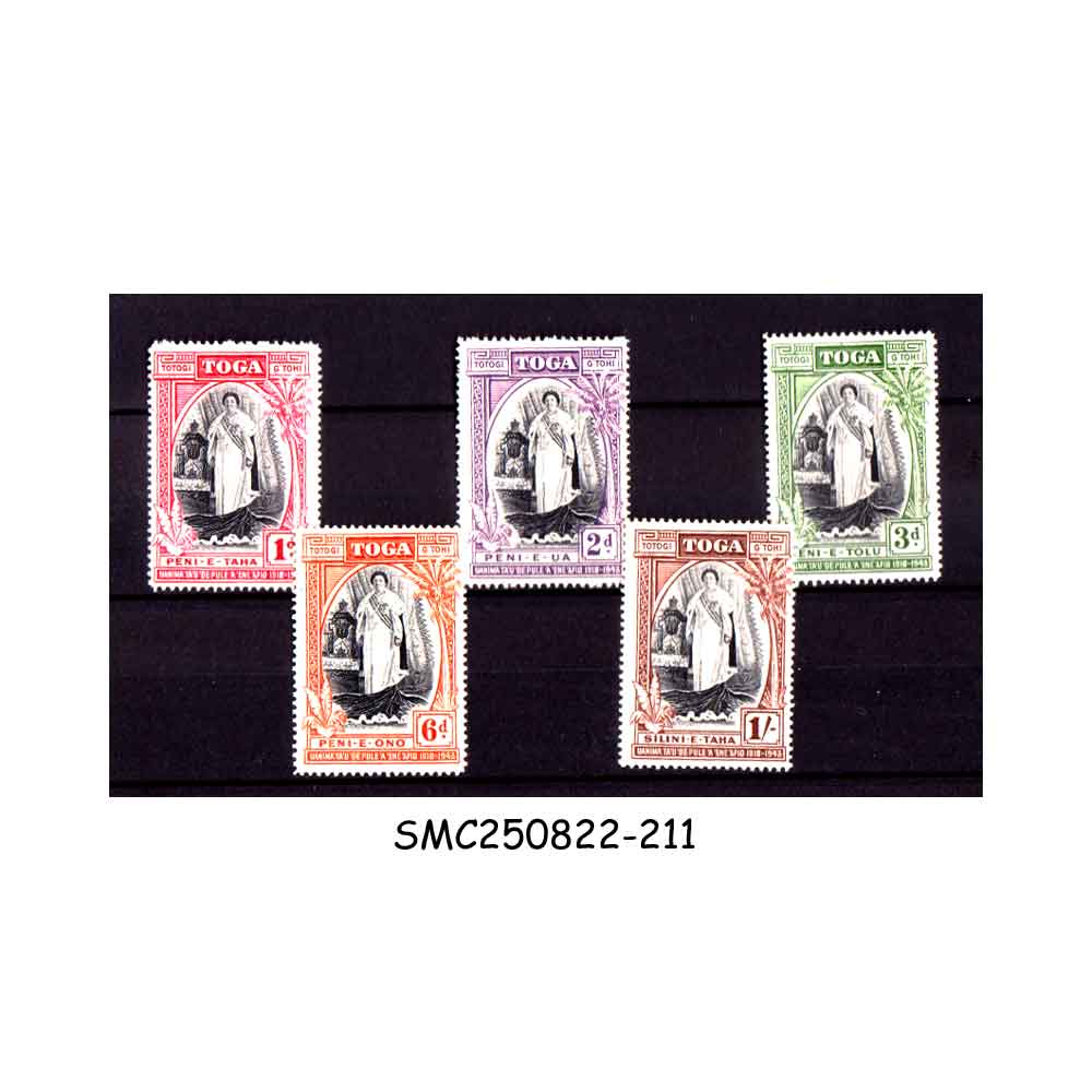 TONGA – 1944 25th ANNIVERSARY OF ACCESSION OF QUEEN SĀLOTE TUPOU III SCOTT#82-86 5V MINT NH