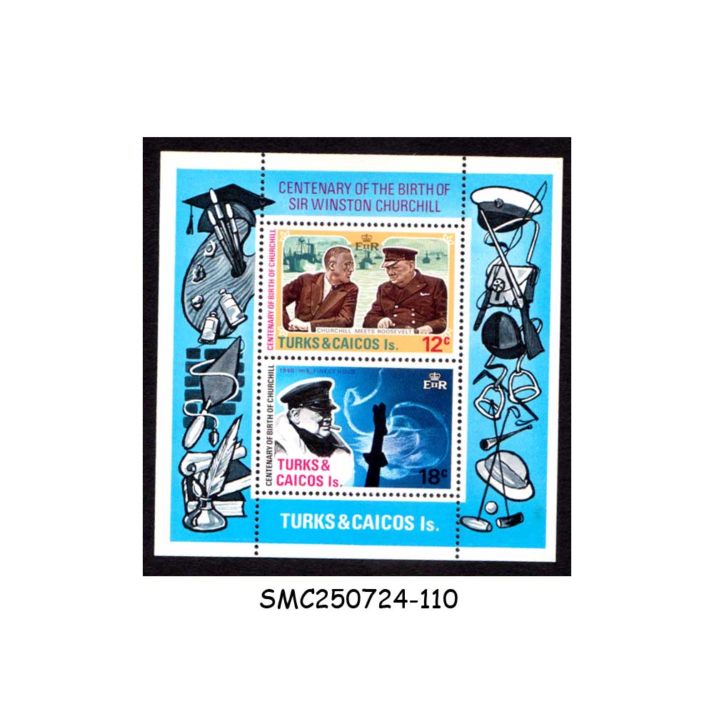 Stamps from TURKS & CAICOS ISLANDS – 1974 BIRTH CENTENARY OF SIR WINSTON CHURCHILL MIN. SHEET MNH